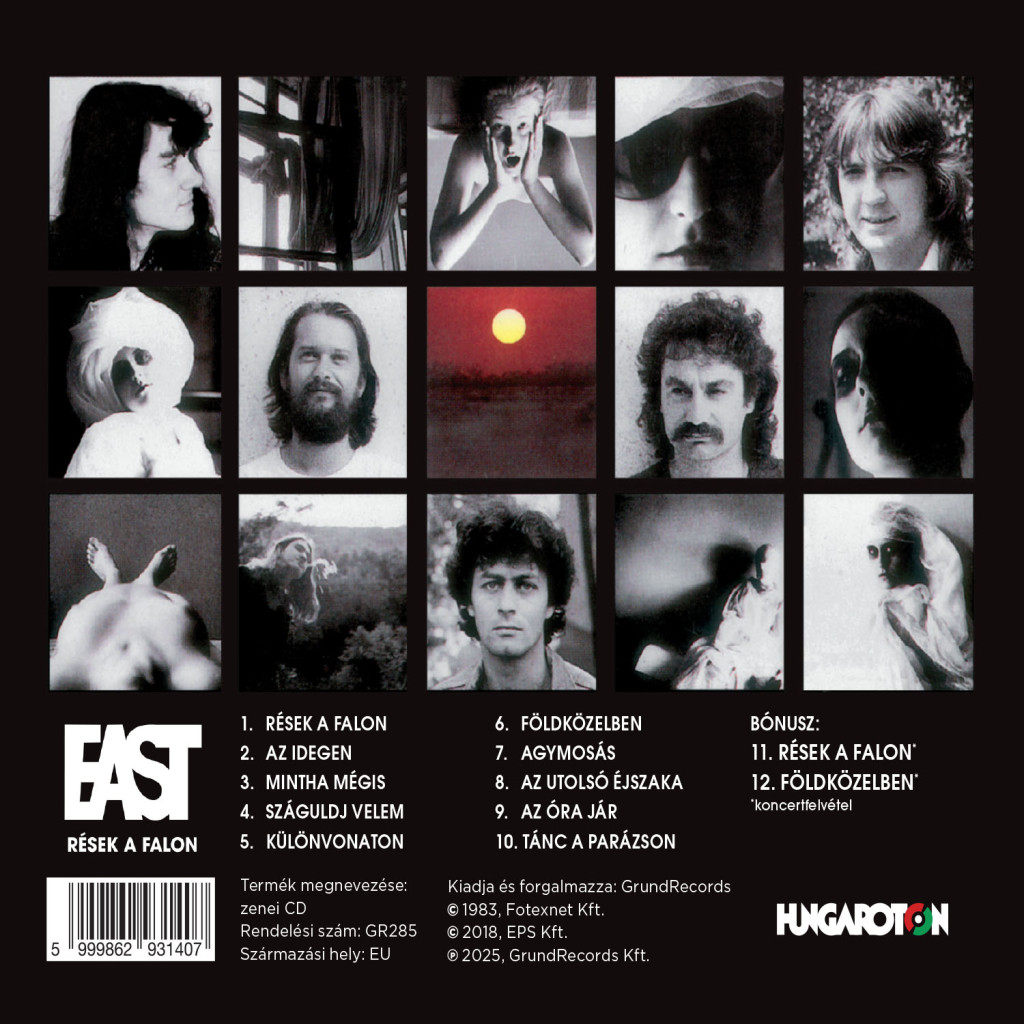 Az EAST Rések a falon című albuma a magyar progresszív rock egyik meghatározó lemeze, amely új hangzással és elektronikus elemekkel hozott friss irányt a zenekar életében. A jubileumi CD-kiadás az eredeti mesterszalagok alapján készült, bónusz koncertfelvételekkel és különleges tartalommal.