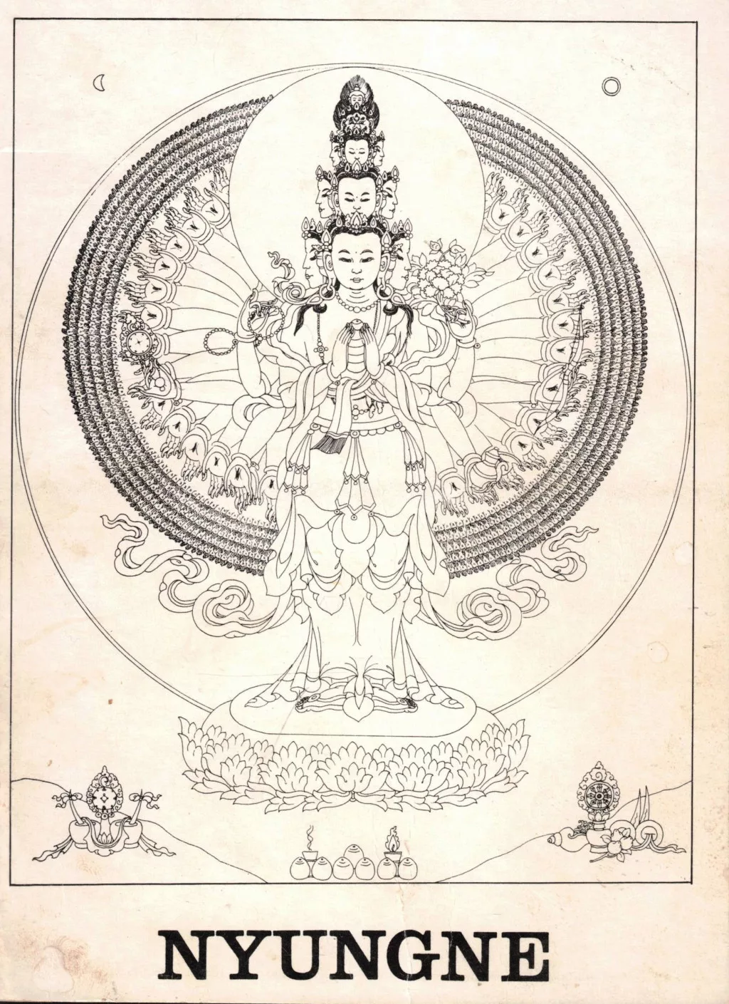 A Nyung ne meditáció hagyománya az indiai Gelongma Palmó jóginitől ered, aki a hagyományok szerint e gyakorlat révén érte el a megvilágosodást. Ha a helyzetünket tárgyilagosan áttekintjük, akkor felfedezzük, hogy életünkben nehézségek vannak. Feltesszük a kérdést, hogyan tudunk segíteni magunkon és másokon. Szeretjük az embereket, az állatokat, és segíteni akarunk nekik. Ez szép gondolat, de a gyakorlatban vissza kell menni egy lépést, Tudunk-e önmagunkon segíteni?