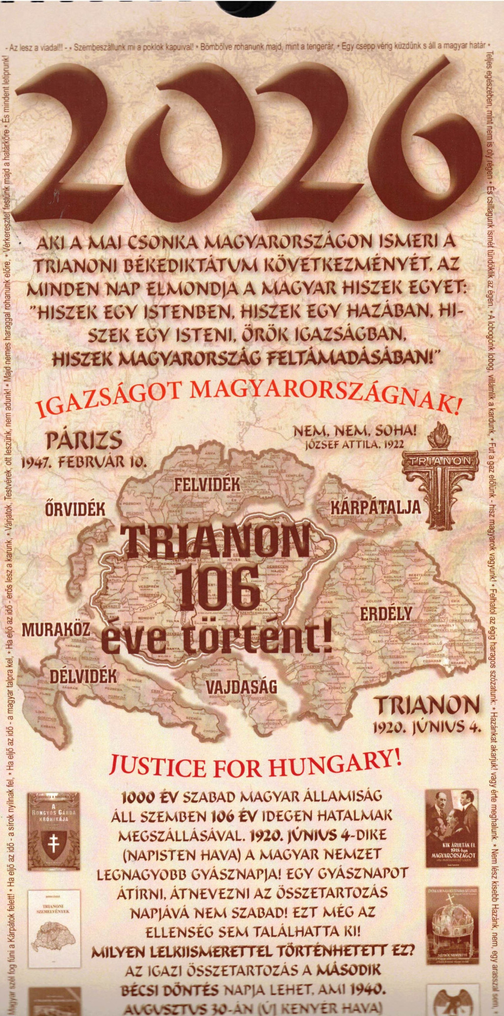 Trianon 106 éve történt! Falinaptár 2026