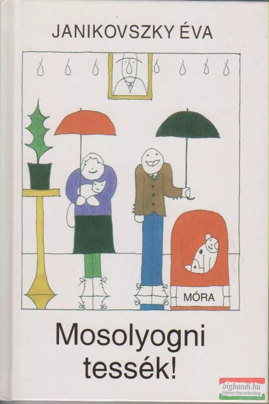 "Mosolyogni tessék! Persze nem szüntelenül, nem reggeltől estik, de bujkáljon bennünk a mosoly - minden eshetőségre készen -, hogy bármikor felragyoghasson. Mert a mosoly, meggyőződésem szerint, mindig egy kis fényt hoz az életünkbe, meg a máséba is. Kicsike fényt, de sok kicsi, mint tudjuk, sokra megy. Ennek a kötetnek az írásai nem egytől egyig kacagtatóak. Aminthogy az élet sem az. De egy nagy felismerésre vezettek, amikor sorba rendeztem őket újabb és régebbi írásaimból. Amennyire igaz az a mondás, hogy derűre ború, legalább annyira igaz, hogy borúra meg derű. Csak arra kell vigyáznunk, hogy a végére is maradjon egy kis derű." - Janikovszky Éva