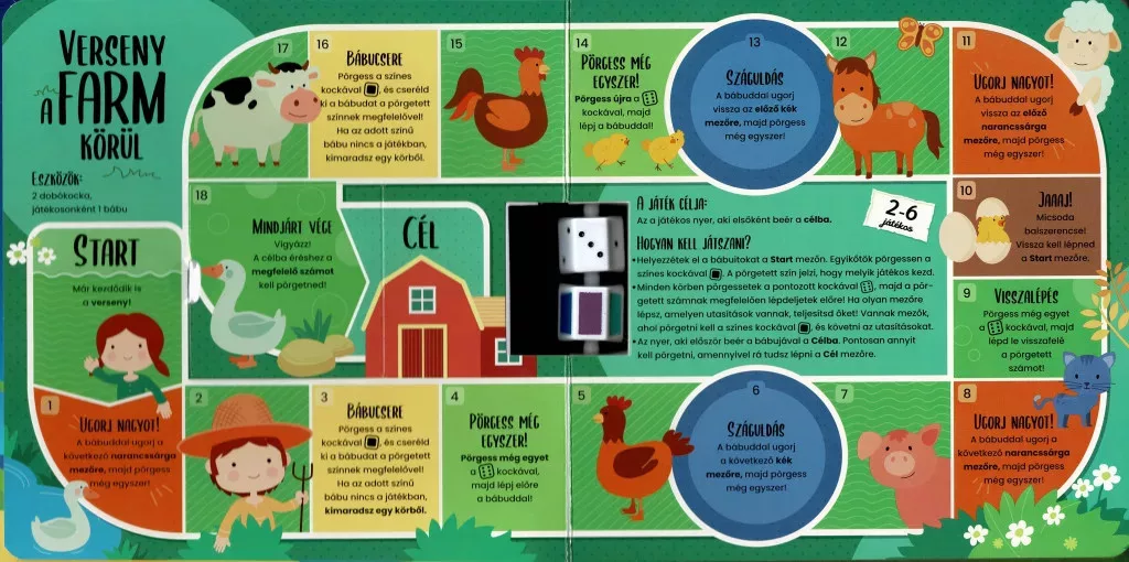 A játékok külön-külön is élvezetesek: „Verseny a farm körül”, „Űrutazás”, „Betűpálya” és „A kalózok szigete” mind saját játéktáblával, színes grafikákkal és egyszerű, gyorsan megtanulható szabályokkal rendelkeznek.